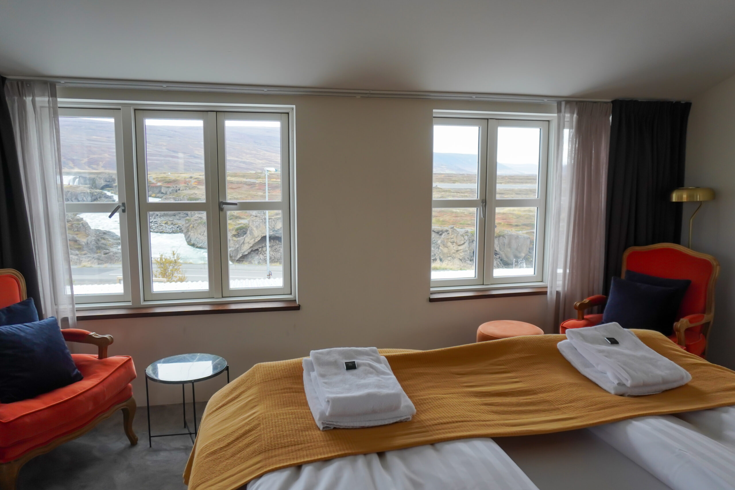 Only a stone’s throw away from the magnificent Diamond circle in Northern Iceland with one of the islands finest natural sights lies in the Bárðardalur the stunning and unique waterfall Goðafoss and just on his impressive feet with a mesmerizing view directly on this natural spectacle you can find our cozy and comfortable Hotel Goðafoss.